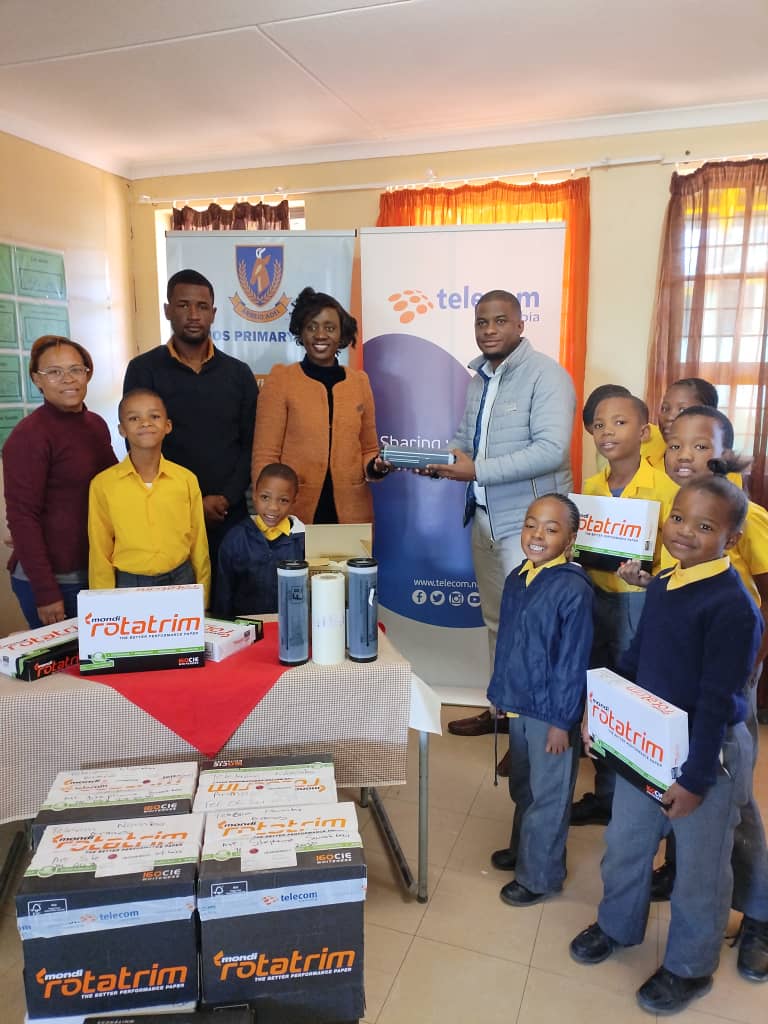 Aranos, Namibia – June 4, 2024 -Telecom Namibia, a leading Namibian telecommunications provider, announced today the donation of photocopy machine ink and printing paper to Aranos Primary School. This contribution underscores Telecom Namibia's unwavering commitment to empowering educational opportunities for all Namibian learners.