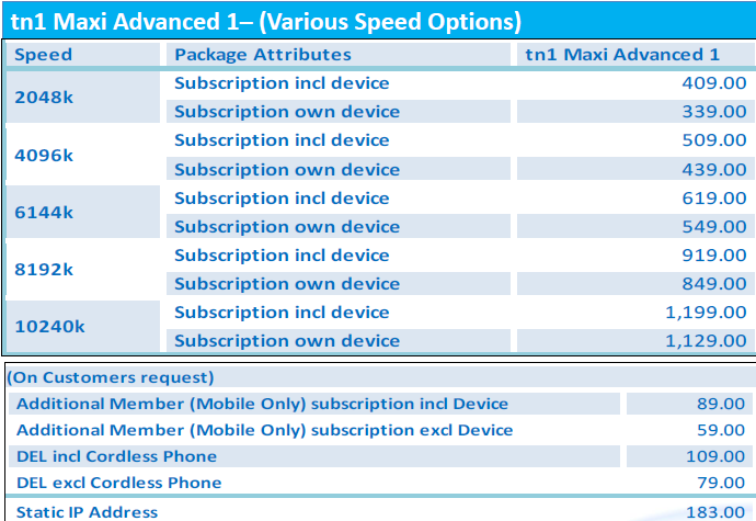 Telecom Namibia tn1 packages offer fixed mobile converged voice, broadband and value added services.