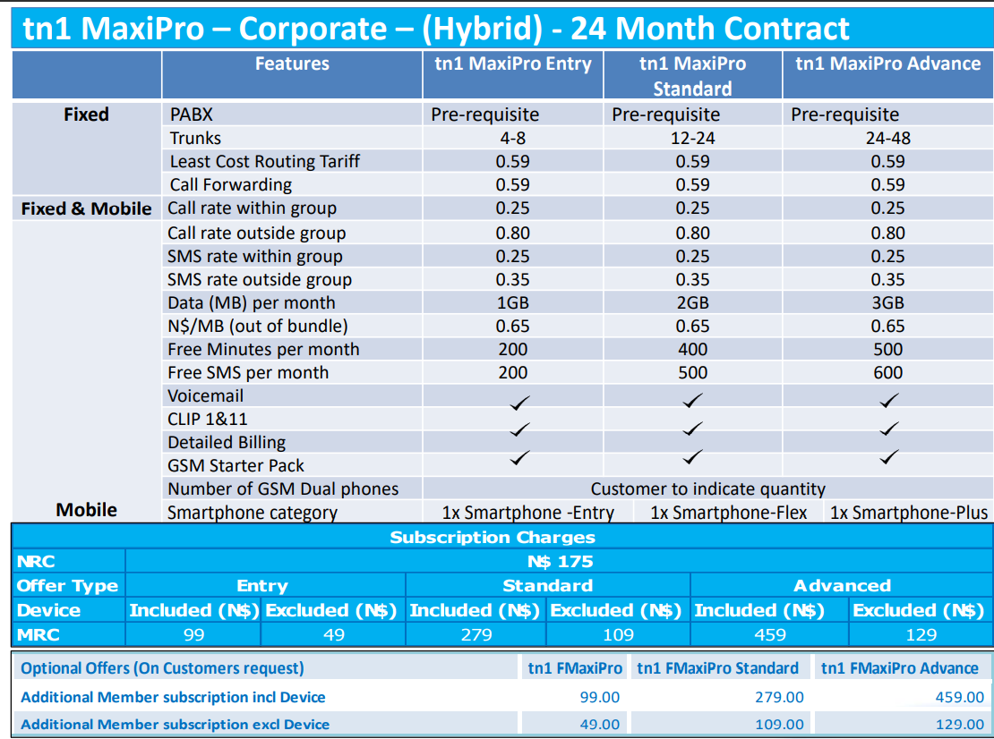 Telecom Namibia tn1 packages offer fixed mobile converged voice, broadband and value added services.